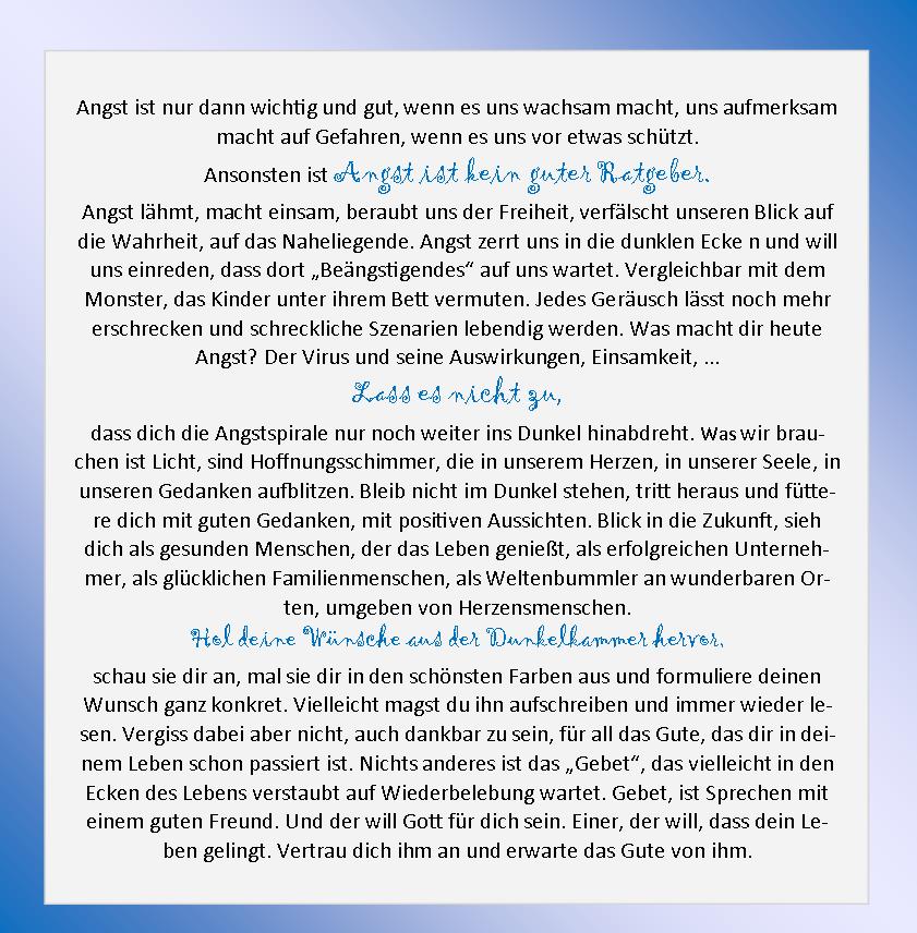 Unter dem Motto: "Lass gute Gedanken dein Leben positiv verändern" erscheinen hier von Zeit zu Zeit
